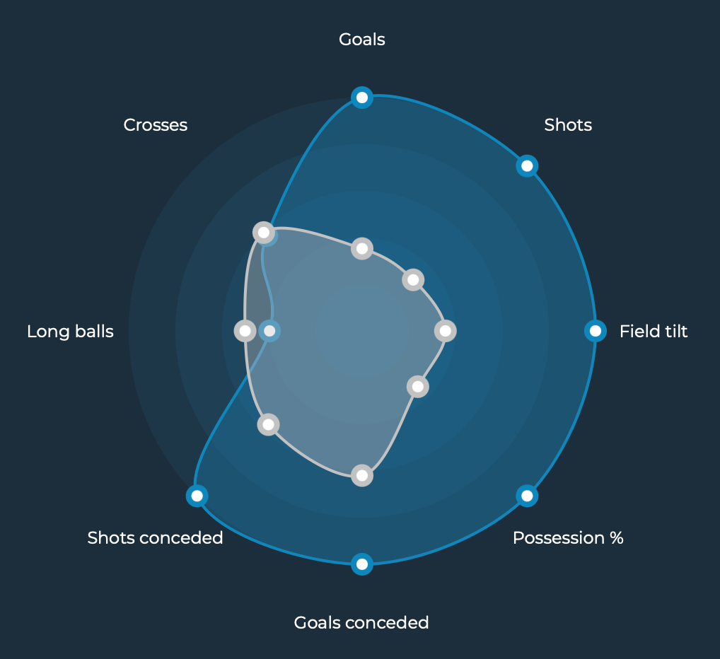 The comparison of these two graphs, explains to us the first substantial change that has taken place, we can see that in the offensive phase PSG is effective in the same way, but in terms of Shot Conceded (from 12.15 a 9.48) it has had a huge improvement, even in comparison to the Ligue 1 average (white graph). This was due to a much more solid and organized phase of possession, with functions for each player defined within the structures used. Even the slight increase in Long Balls has restrained responses in the possession phase, the creation of a solid positional structure in terms of principles brings stable possession maintenance so as to attract and provoke opposing pressures to clear space in depth that is attacked more frequently.