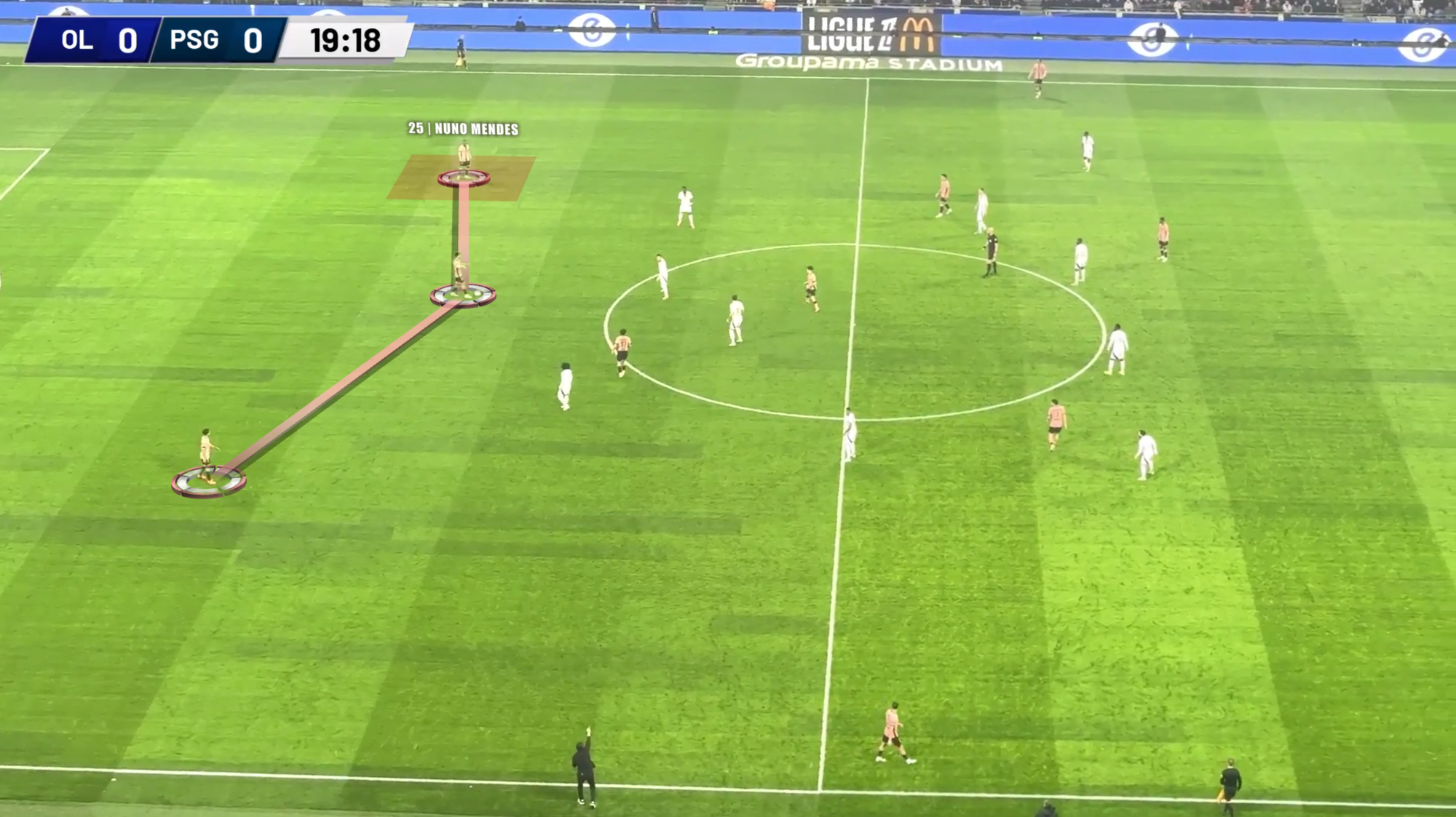 One of the reasons why there has been this improvement can be found within the structures implanted by Luis Enrique this season. Reconnecting with the discourse of functionality, by being able to achieve an overall structural stabilization he has been able to use Nuno Mendes more frequently as a central lateral defender in the back-3s in the build-up phase.